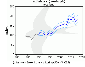 De soort dankt zijn naam aan de zwarte knobbel op de oranjerode snavel, die bij het vrouwtje gemiddeld kleiner is en bij het mannetje tijdens het broedseizoen extra opzwelt. In het water is de Knobbelzwaan verder nog te onderscheiden aan de sierlijk gebogen hals en de naar beneden gerichte snavel. Poten grijs tot zwart. In de krachtige vlucht strekt de knobbelzwaan de hals en maken zijn vleugels een karakteristiek, zingend geluid. Knobbelzwanen broeden langs ondiep water, vooral langs sloten in veenweidegebieden, som in stadsparken en langs andere waterwegen, waarin ze kunnen grondelen. Veel Knobbelzwanen blijven het hele jaar in hun territorium, terwijl andere wintergroepen vormen. Knobbelzwanen hebben schoon water nodig waarin kranswieren en fonteinkruid het goed doen.